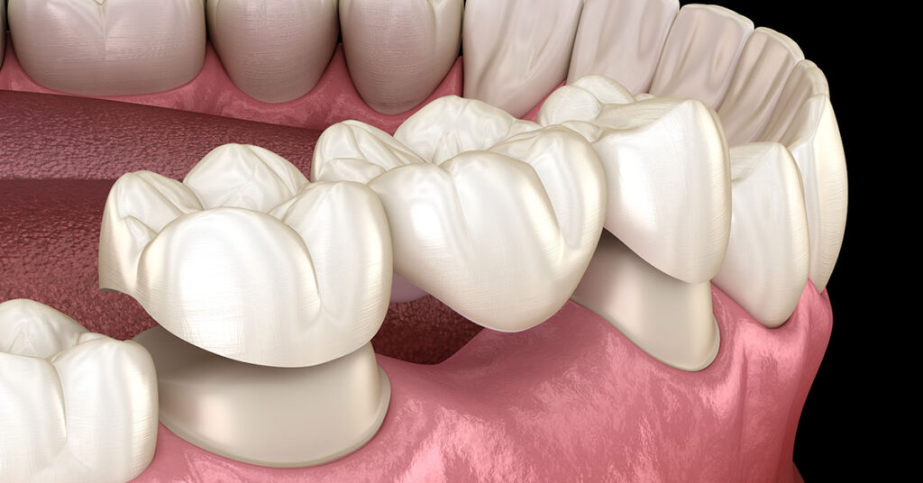 There are many reasons a patient may require a porcelain bridge. This includes everything from avoiding the need for dentures to returning one’s confidence with a beautiful smile. In addition, bridges made of porcelain are often used to improve speaking and chewing as well as keeping current teeth in a more natural and correct alignment. Perhaps most obvious of all is that porcelain type bridges are typically used to replace missing teeth with porcelain material that perfectly mimics natural teeth in look and feel. Having porcelain fixed bridges placed typically requires two office visits. To place the bridge requires modifying two of the patient’s natural teeth to be used as anchors.